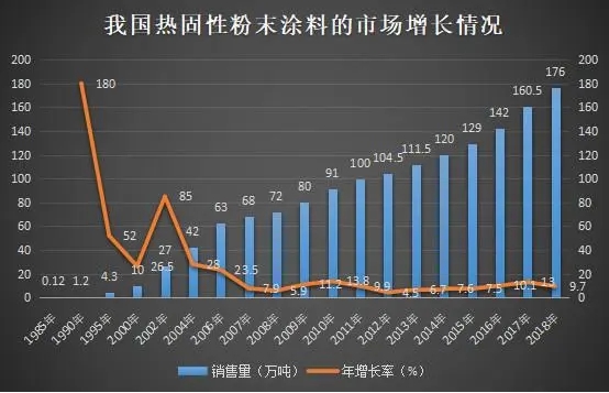 我國的粉末涂料自六十年代中葉開始研制生產(chǎn),到了八十年代才初具規(guī)模,生產(chǎn)技術(shù)和產(chǎn)品質(zhì)量也提高到了一個新的水平,縮短了與世界先進水平之間的差距,整個粉末涂料產(chǎn)業(yè)得到了持續(xù)的增長,其復(fù)合增長率在10%左右,........